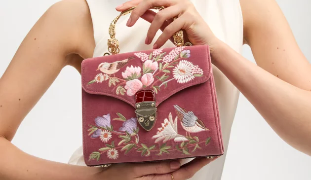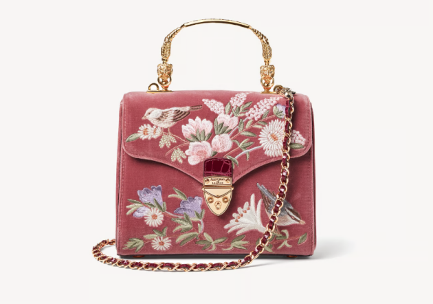 Midi Mayfair in English Garden Bird Hand Embroidery on Velvet | Buy now from Aspinal of London