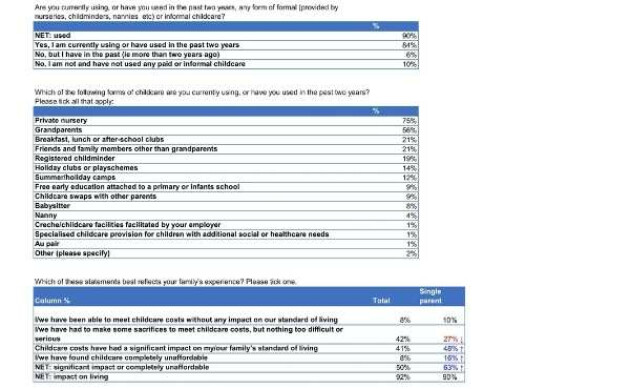 12% (34% of those with a household income of less than £20,000) say they’ve had to cut back on essential items, including food and housing, as a direct result of childcare costs.
