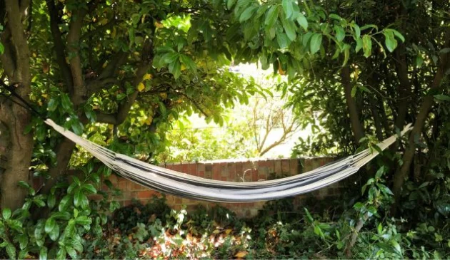 If you’re not a hammock aficionado (and you've already learned the hard way not to use too-skinny branches) then getting in is a bit nerve-wracking. Go slowly and take my word for it: as long as you choose thick, sturdy branches you can trust the hammock and straps to do their job. It’s worth installing it a bit higher up than seems necessary too, as it dips quite a lot with someone lying in it and you don’t really want your bum grazing the ground. There are detailed height instructions in the information booklet, so do refer to these before you set it up to ensure a safe hammock experience.