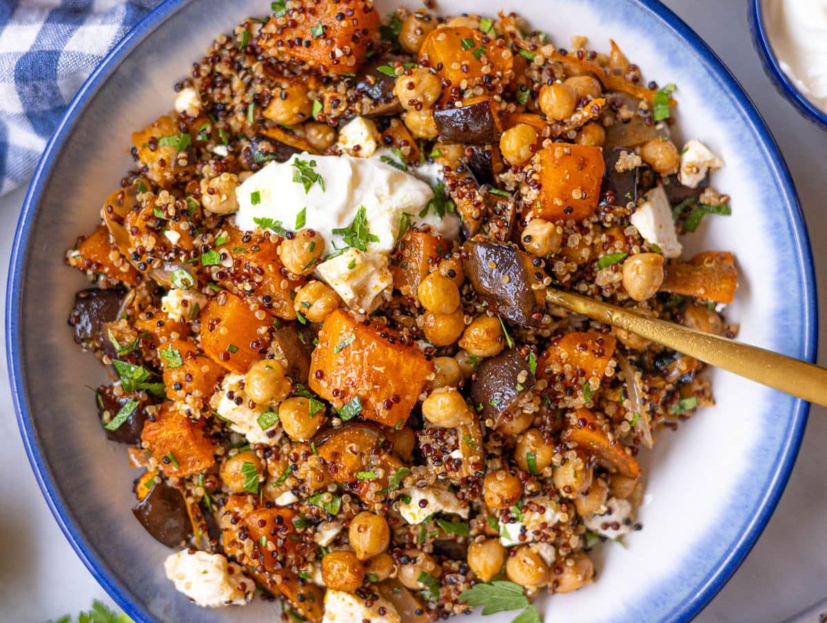 ~ roasted cauliflower, chick peas, tomato, green leafy salad for lunch - add chicken/salmon if not meat free night for dinner.