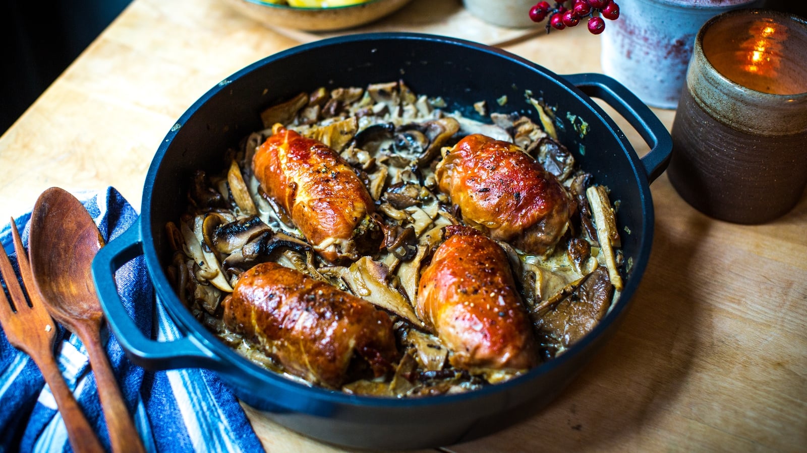 Custard - 100ml double cream, and a teaspoon of sugar to each large egg yolk. I use 6 egg yolks (but again, scale to the dish) and I add an extra egg yolk to get a thicker custard as I want it to set but you can also just use a spoonful of cornflour if you don’t mind the taste. Add vanilla for flavour.
