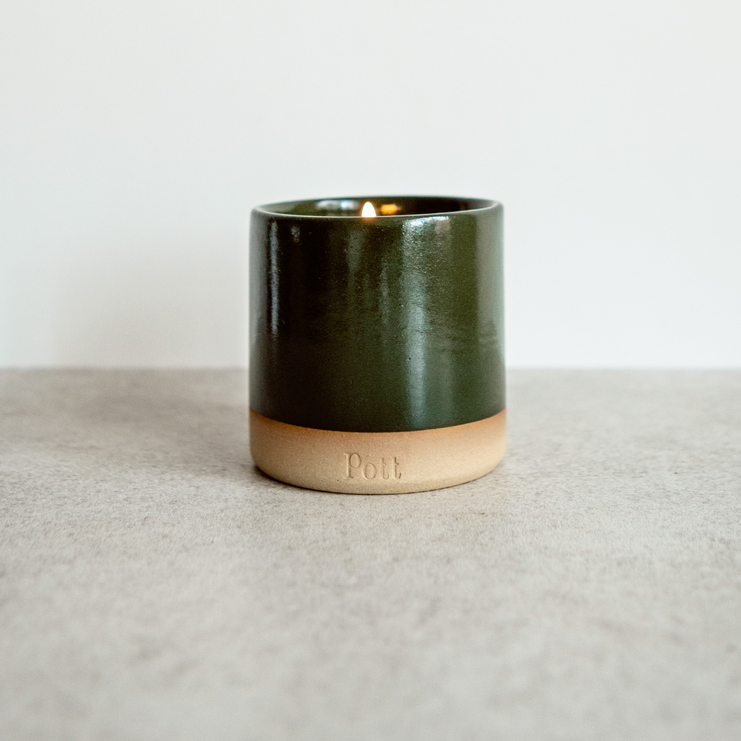As part of our Christmas Collection. This Standard Pott is a traditional dark green with a glossy finish. It has been handmade by local artisan potters. Just choose your scent: Myrrh - A rich, regal blend of incense, oud, and dark woods. It's warm, smo...