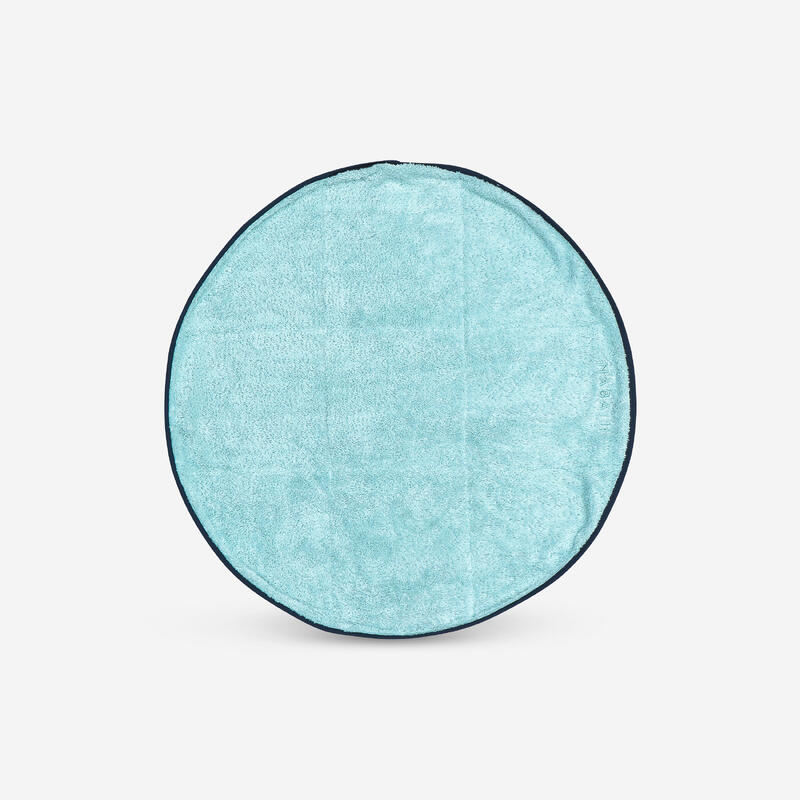 I use dusting powder (cornstarch based) after swimming as it makes clothes slip on much more easily, especially bras. I only take one towel, which is thin but is good enough to use as a hair turban till I get back to the cubicle and them for the rest of my body. I’ve never felt the need to stand on one, the floors are always dry at our pool. I like to travel fairly light as I walk to the pool and back.