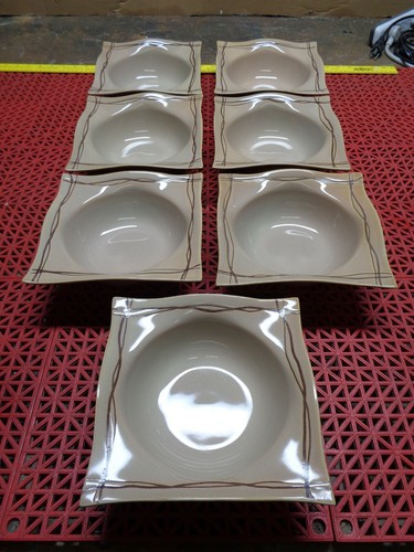The bowls must be white or beige. There must be a trim. The trim can be beige or brown.