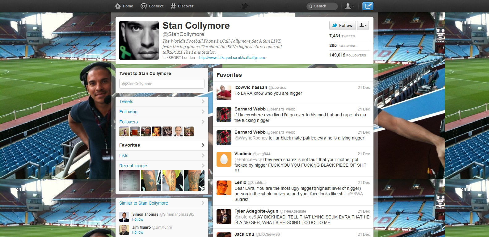 In case you hadn't seen it: this is what Collymore puts up with. MmeLindt took a screenshot of some of his saved tweets before his account was protected.