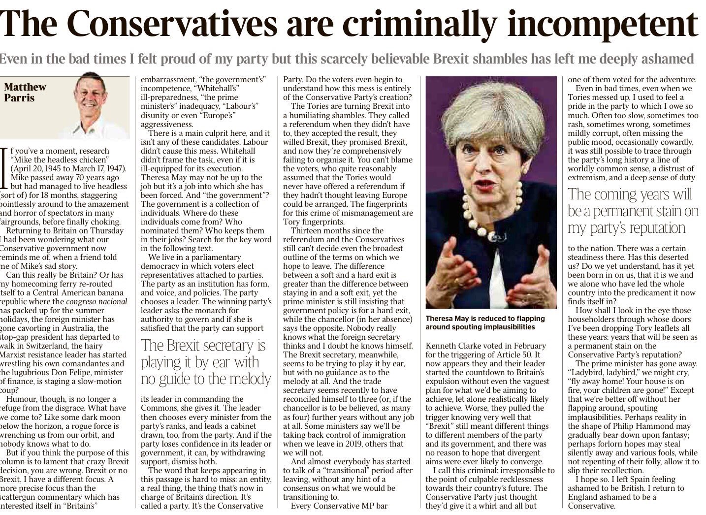 "The Conservatives are criminally incompetent" - Matthew Parris