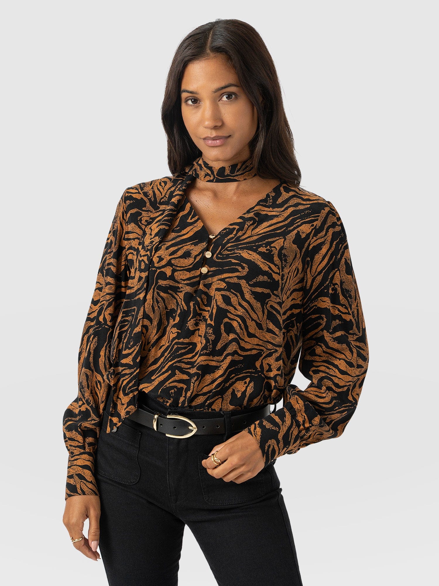 I made the mistake of going into Reiss yesterday and I love this - it picks up the brown tones I’m looking for to complement my shoes but I cannot spend £198 on a top. Has anyone seen anything similar?