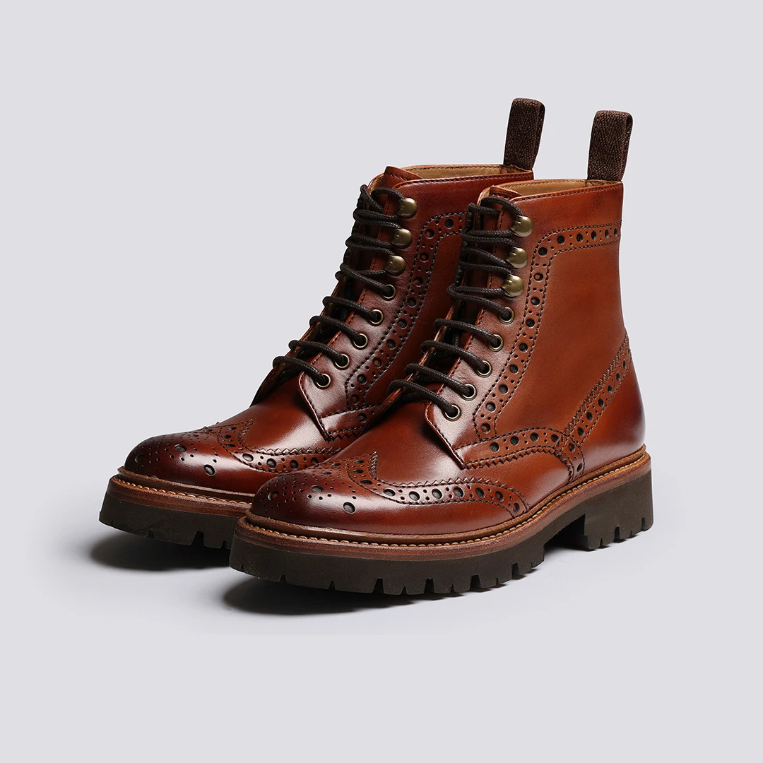 Shop Fran, our womens brogue boots in tan leather. Fran is a full brogue boot with a wingcap and a lightweight, chunky commando rubber sole. Free worldwide returns available.