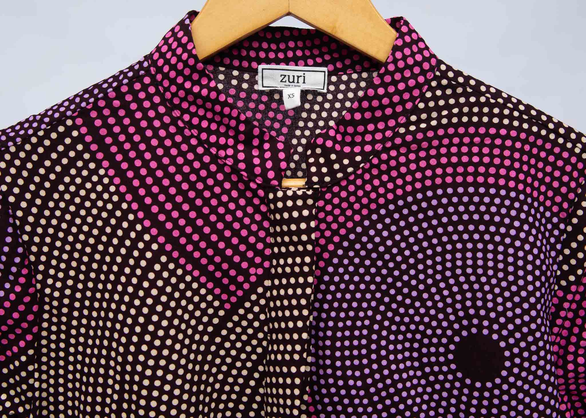 This dress is out of this world! 100% cotton kitenge sourced in Kenya Color notes: Pink, purple, brown, beige Functional pockets Button fastening through front Machine wash cold with like colors Fits true to size, take your normal size Airy fit, cut to...