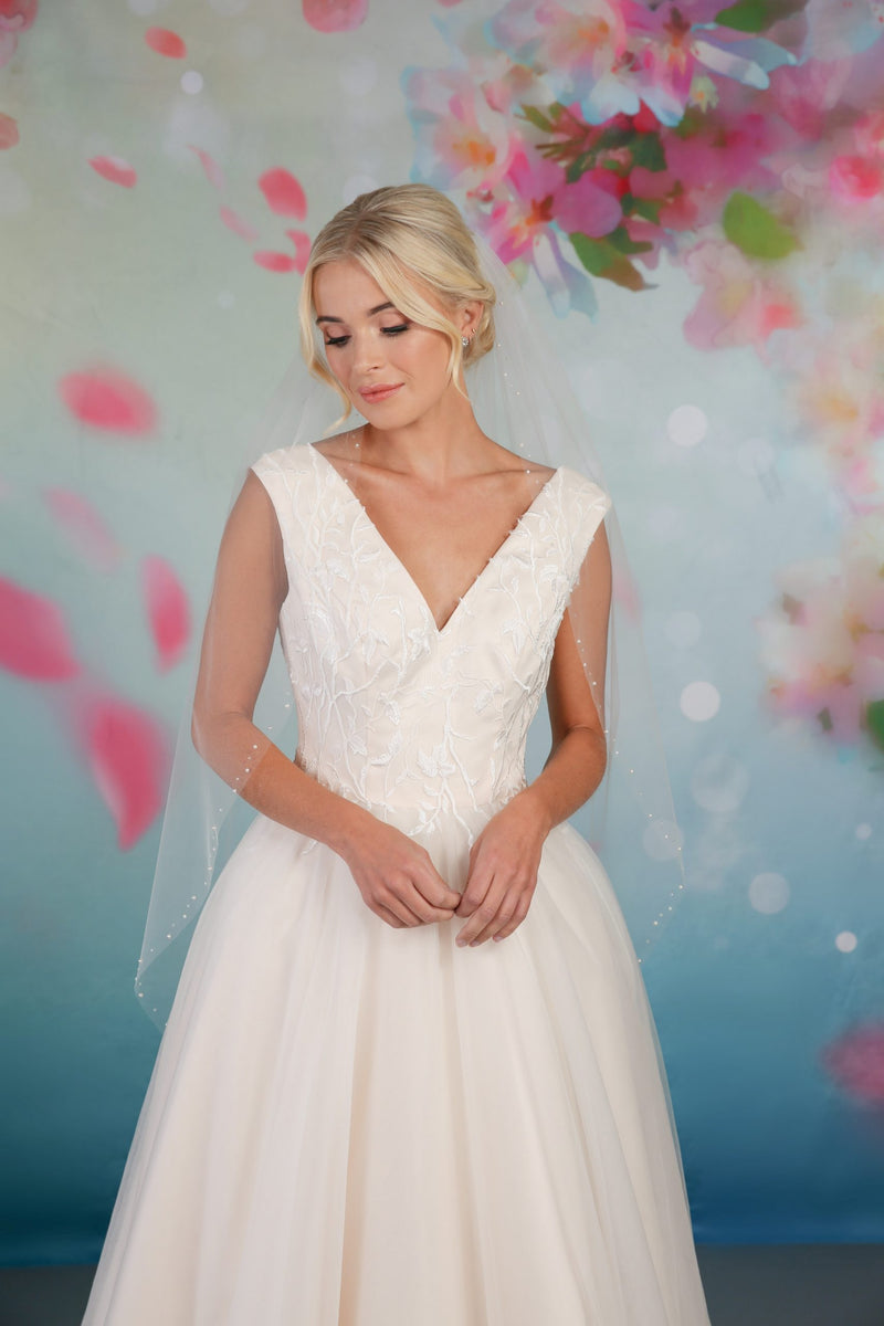 Just that really. Looking for a '2nd time round' wedding dress, must be simple and elegant but I want to disguise my enormous bosum as best I can! What sort of neckline should I be looking at? Thanks!