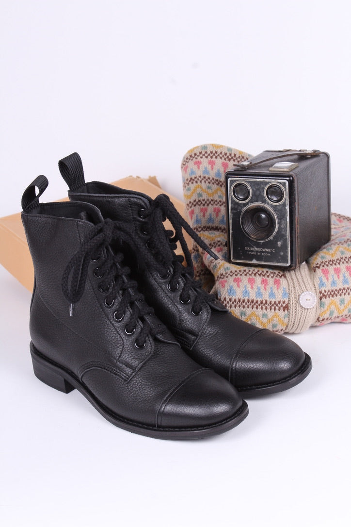 Morning all. I'm after a pair of preferably lace up flat boots to wear with cropped wide leg jeans/ cords and shorter dresses. Nothing super chunky or spectacular. Just well made, plain, super comfortable and smartish looking.