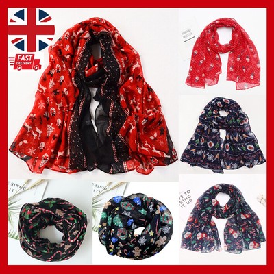 Women Ladies NEW Christmas Festive Scarf Reindeer Print Winter Snowflake Gift UK | eBay