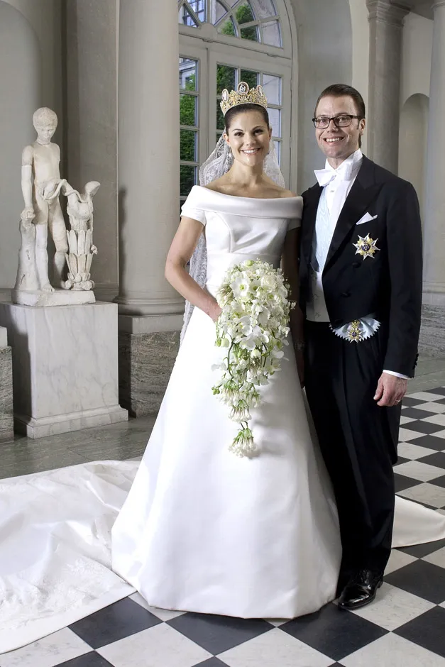 I really like Victoria’s dress too. She took the opposite approach and went for something very simple, so all the focus is on her and Daniel and the marriage ceremony. He looks great too, apart from the outsized bow tie - similar aesthetic - think the pinking on the honour at his waist is a nice touch.