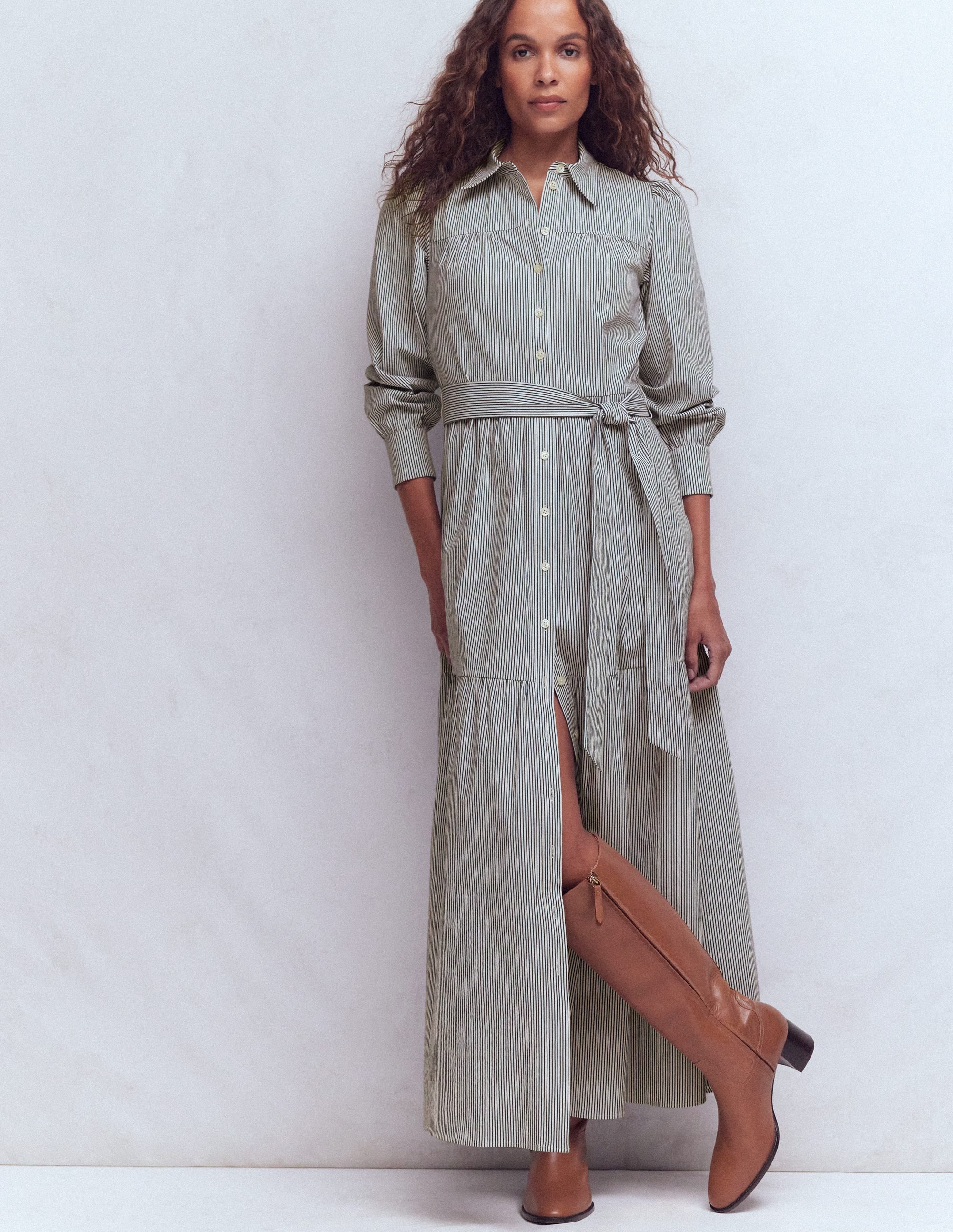 I posted this last time. It's very similar in shape to the one you posted originally, & comes in six colourways/prints (these are my favourite three) - all very different so they don't necessarily look like the same dress. The belt is removable, & it's unfitted, fine cotton & unlined. It costs £27.99.