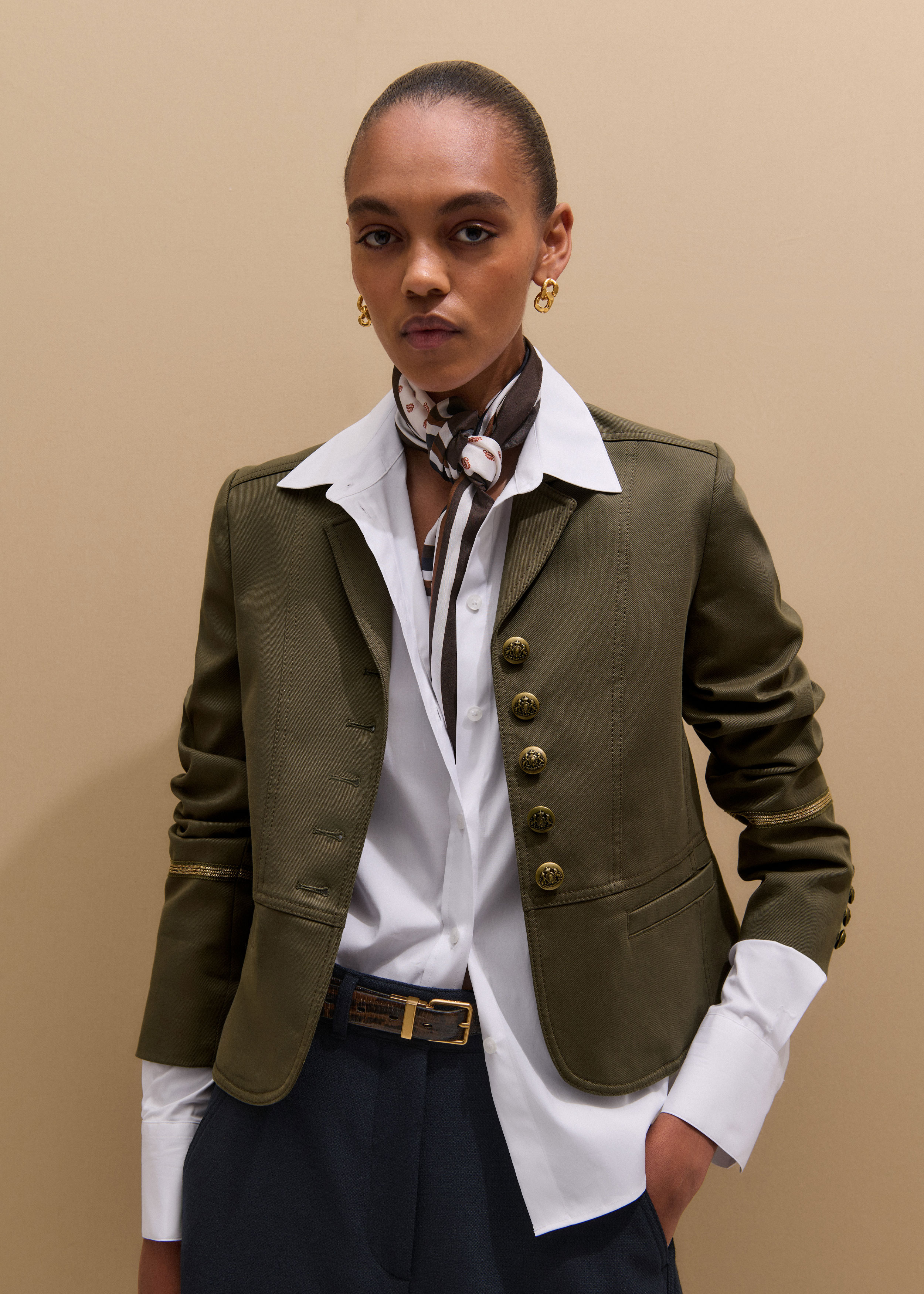 I have this (also comes in cream) - similar to a denim jacket, but the colour and buttons make it seem a bit different and slightly smarter.