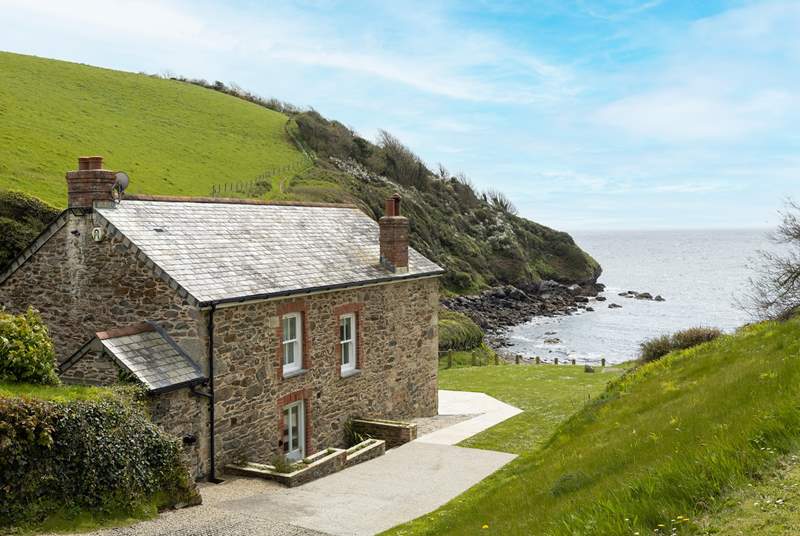 Polperro has a small tidal beach, so definitely not a huge swathe. There are quite a few cottages right next to it though.