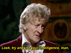The writers/producers (etc) would do well to heed the 3rd Doctor’s sage advice from attached GIF, subbing their profession for “politician” as necessary.