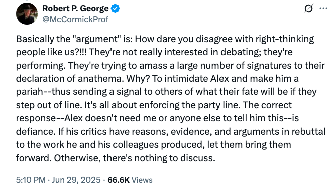 Because Alex contributed to the writing of a Health and Human Services Review of treatments for pediatric gender dysphoria, he is in the process of being demonized by a group of academics. It’s not that there’s anything wrong with the HHS review, really; the demonization came because it was issued by an HHS whose head was appointed by Trump, and also because it goes along with the increasing evidence that treating childhood dysphoria with “affirmative care” is deeply problematic, leading to premature dispensations of hormones and surgery to adolescents and children who, without that “care,” would mostly come out as gay…