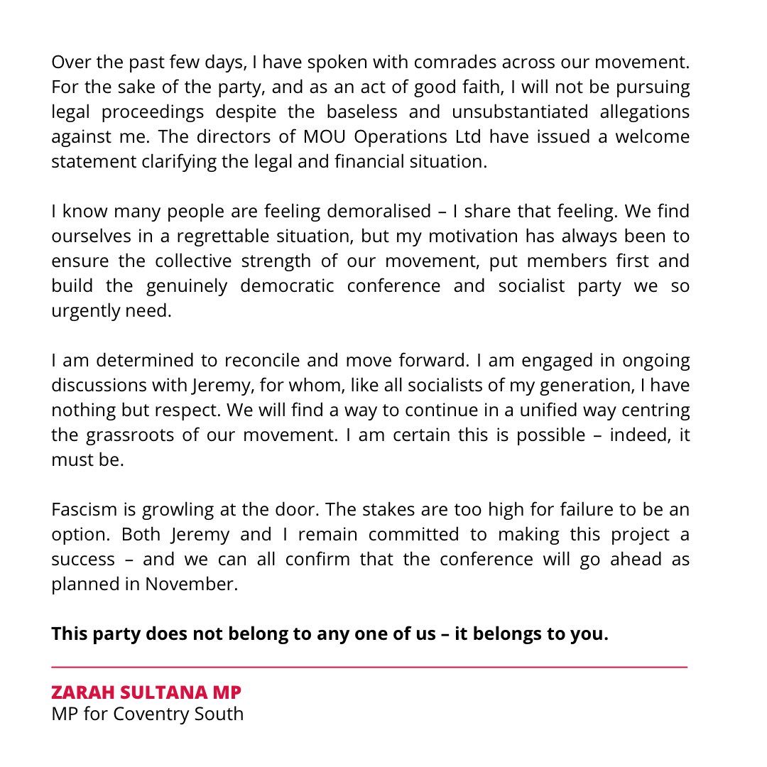 Reading that article, it seems Sultana has been sidelined. However, if this really is to be a 'grassroots' movement, the split between the TWAW and the Islamic Social Conservatives is irreconcilable. I suspect the vast majority of the people who signed up to the movement are TWAW, so if they decide that is the position of the party, the Muslim MP's will walk, taking their supporters with them. As said by @SionnachRuadh already, they think the Muslims are going to be NPC's. They wont be. JC doesn't really care as much about TWAW as he does about Palestine but he is almost irrelevant as he wont make any decisions either way.
