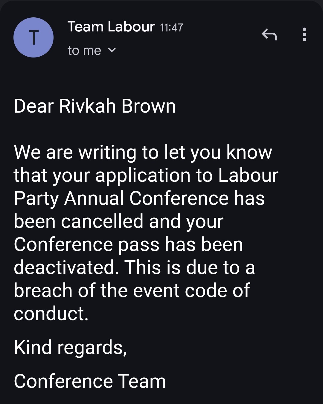 I don't much like the control freakery in the Labour Party - which seems to be a thing no matter who is leader - but LOJ being barred from conference is very funny