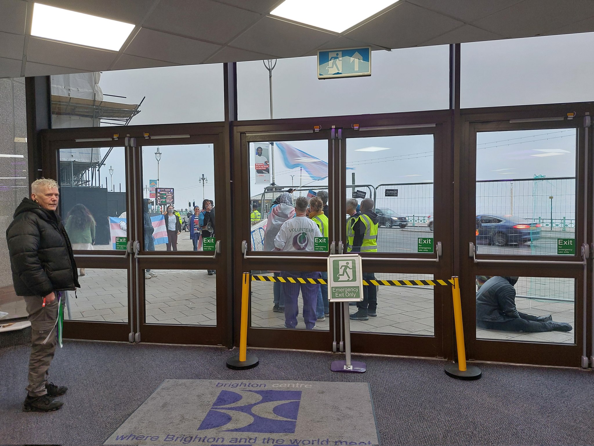 Brighton police are allowing TRAs to block the entrance to #FiLiA2025 and intimidated woman coming to talk about male violence. Kind of proves our point really. #Sisterhood #Solidarity