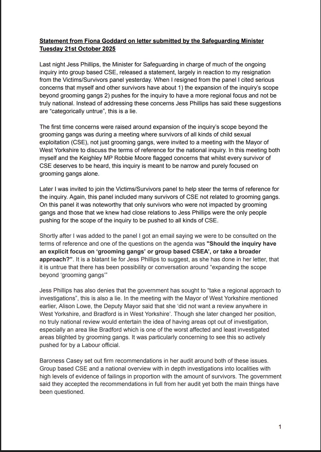 This came up because some of the survivors already invited onto the panel said that if the phrase "grooming gangs" didn't include group abuse then they would have to step down.