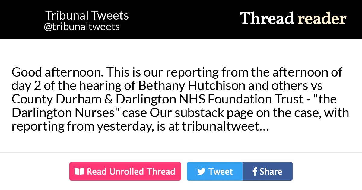 "Darlington Nurses" vs County Durham and Darlington NHS Trust Tribunal Thread 2