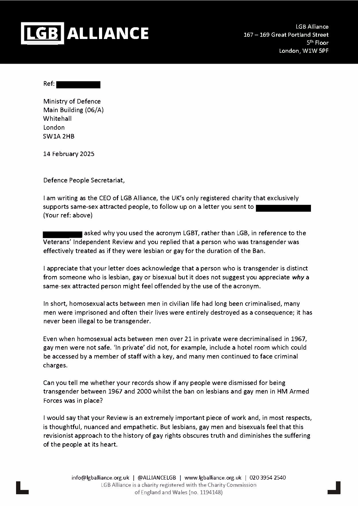 All of the reports that I have heard today have talked of an LGBT or LGBT+ ban in the armed services that was overturned in 2000. A sad history but one that the services are trying to rectify