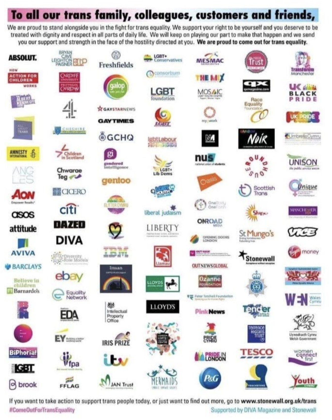 Five years ago, Nancy Kelley was able to persuade major companies to sign an open letter in support of gender self-ID. This year’s letter reveals that the big companies have all gone. It is a long list of sole traders and micro-businesses. Less Disney, more Mickey Mouse.