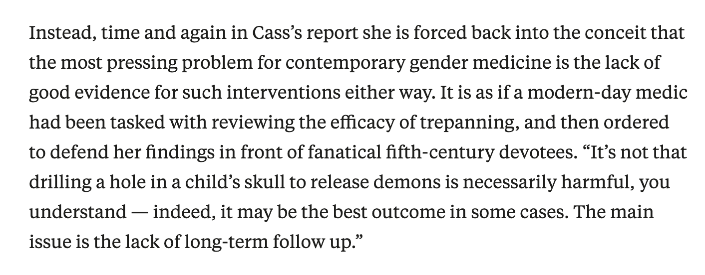 And He's obviously uncomfortable going ahead- would he really rather skip this data gathering stage? Why on earth didn’t Cass recommend that the Health Sec should start with the transitioned and detransitioned patients the NHS has already made? They could do this by following up existing data and commissioning new social research to speak to transitioned and detransitioned young people who went through medical and surgical treatments via GIDs and the NHS and/or privately, as children and then as young adults?