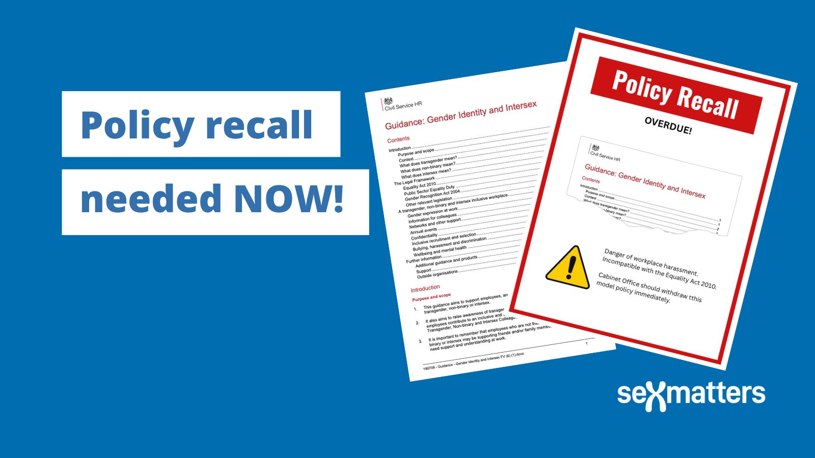 "Our letter to Sir Chris asks for the urgent withdrawal of the Cabinet Office’s Gender Identity and Intersex Model Policy Package. ...