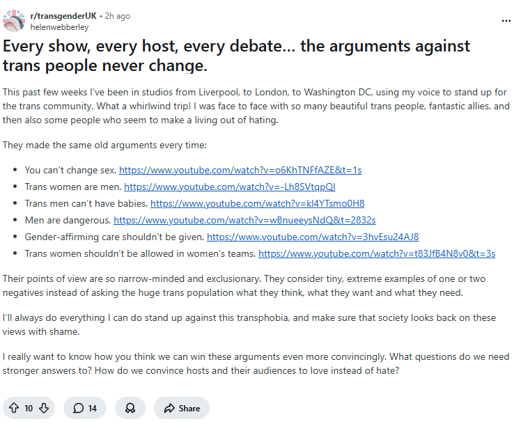 Woke, CSJ, BLM, TQ+, TRA, antifa types - the "hard left" - an utterly shameful, dishonest incoherent bunch. Webberley actually stands out as one of the relatively rare ones willing to speak, even if she refuses to debate in good faith.