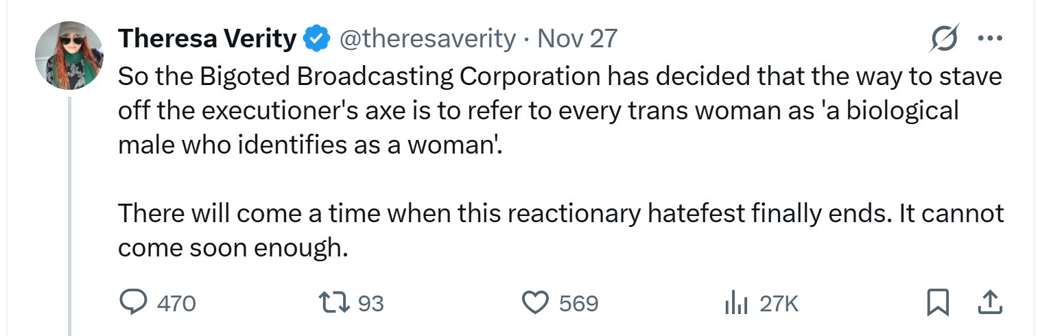 This is the tack that Nicola Sturgeon took wtih Isla Bryson, and other politicians have repeated, notably Humza Yousaf. 'rapist gender'. 'That individual is a rapist'.