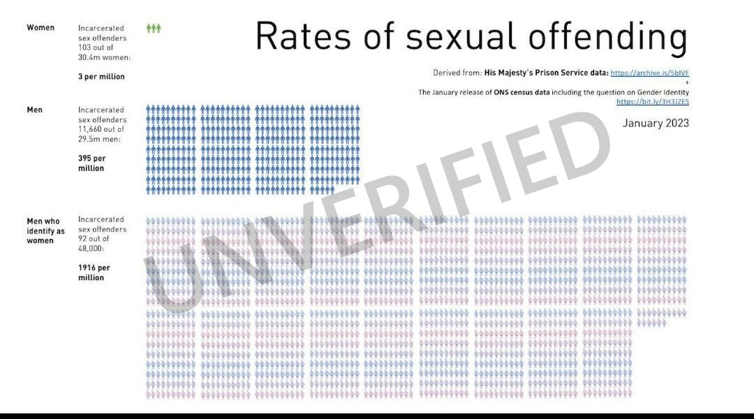 The E&W one is based on the number of “trans women” as self declared in the 2021 census as the men who identify as women population. It’s not a figure the website made up. The sex offenders in prison figure comes from a government report. The male figure is the adult male population compared to the number of male sex offenders in prison. They are all based on official figures whether you want to deny it or not.