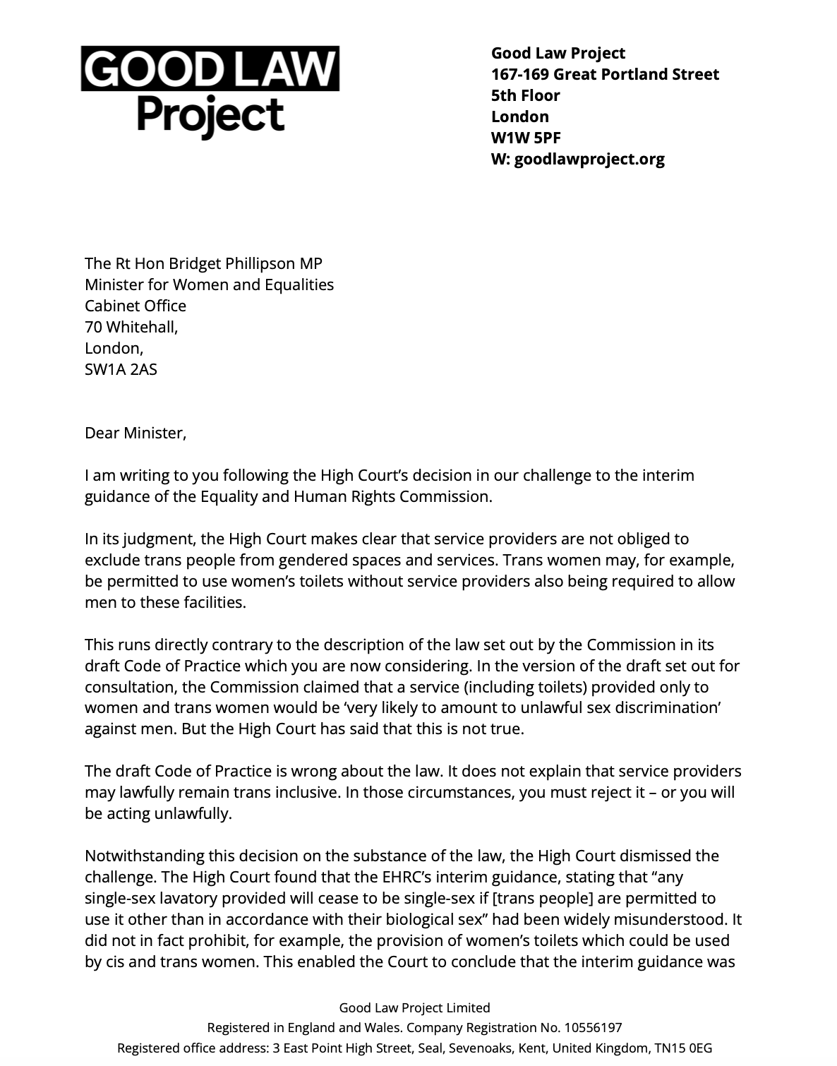 service providers may lawfully provide, for example, women’s toilets which both cis and trans women are permitted to use, but from which cis men are still excluded.